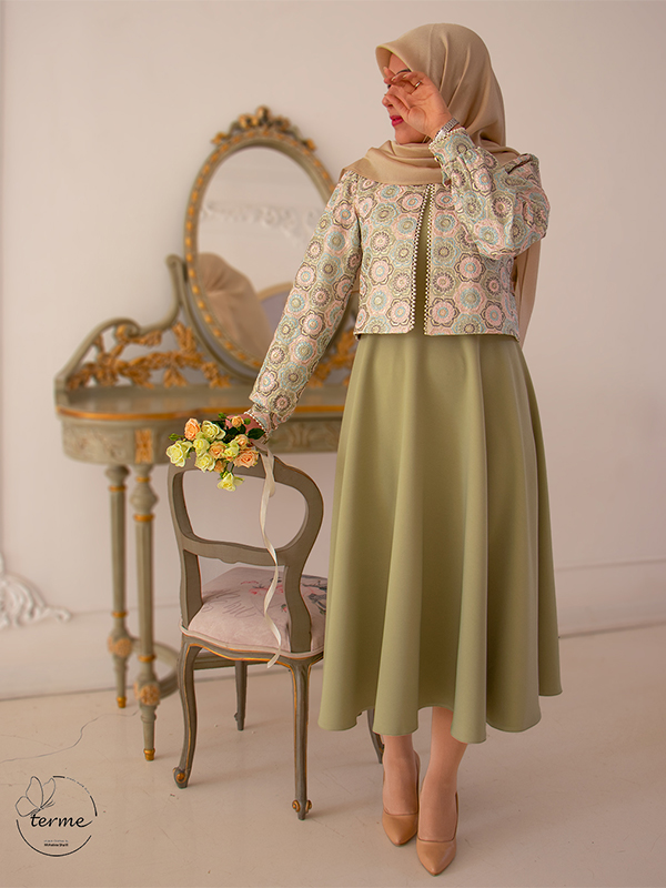 ست کت سارافون مروارید (کت کرم-سارافون سبز)
