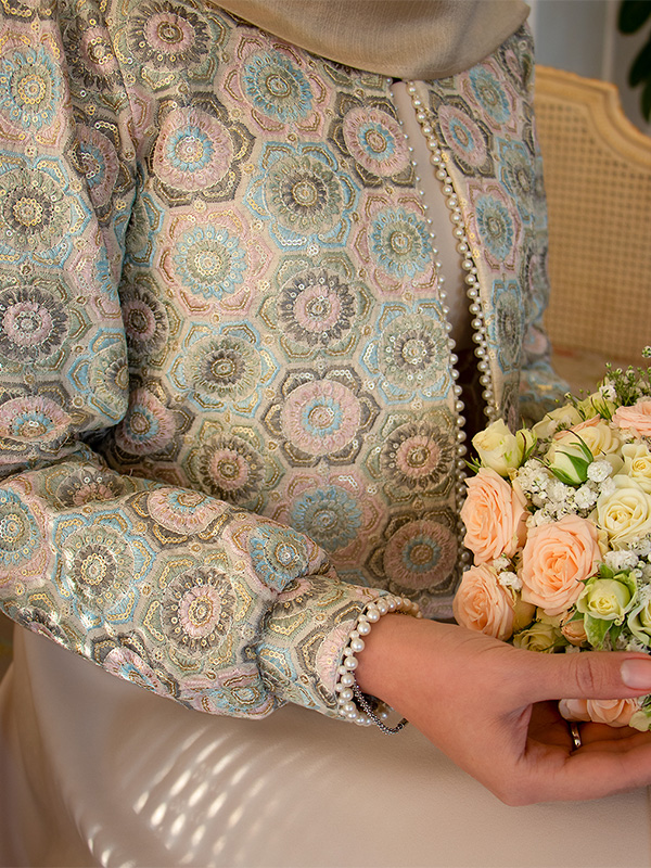 ست کت سارافون مروارید (کت کرم-سارافون سبز)